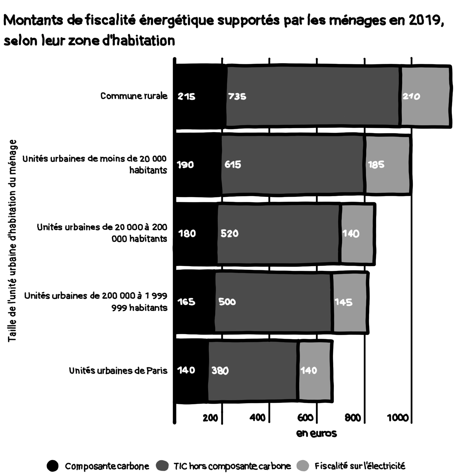 Si les Parisiens supportent en moyenne 660 euros de fiscalité énergétique par an, les habitants des zones peu denses en payent le double (1165 euros en moyenne).